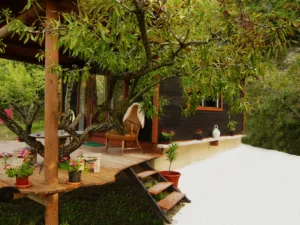 En lo alto de las montañas de Alcalalí, rodeada de almendros, olivos y viñas, se encuentra una encantadora cabaña ecológica con alma étnica, pensada para quienes buscan una conexión profunda con la Naturaleza. Construida en madera sostenible, funciona con energía solar, recoge el agua de lluvia y respeta el entorno en cada detalle. Desde su porche con vistas al mar y a la Sierra del Montgó, puedes contemplar el amanecer, leer bajo los árboles o disfrutar de una cena bajo las estrellas. La finca, de 5000 m², ofrece privacidad, silencio y autenticidad, muy cerca de rutas de senderismo, pueblos mediterráneos con encanto y calas de aguas cristalinas. Un refugio donde el presente se convierte en el único plan. ¿Le das a «Reserva…»ya?