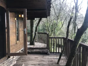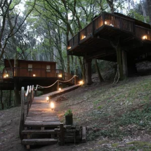 Si te ha gustado la propuesta anterior, tenemos una más de este estilo. Las Cabañas Ourense se ubican en Vilar, a tan solo 7 kilómetros de Ourense. Junto al Río Lonia y a tiro de piedra del famoso Cañón del Sil. Este fantástico complejo de casitas de madera en los árboles ofrece 5 casas con jacuzzi privado (dentro de la cabaña o en la terraza) y unas ventanas panorámicas por las cuales podrás observar todo el entorno natural que te rodea. Fantástico ¿a qué sí? Pues, si quieres pasar una experiencia única basta con que le des a «Reserva» y ya está…