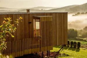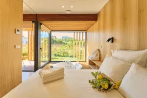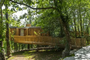 En el corazón de un bosque gallego, las Cabanas do Barranco, Cabanas Sen Barreiras y la Finca Apriscos ofrecen una experiencia única entre pinos, robles, castaños y lagos rodeados de Naturaleza. Ocho cabañas camufladas en el valle, otras dos junto a un lago lleno de vida silvestre, y seis elevadas e integradas en el paisaje —adaptadas para personas con movilidad reducida— invitan al descanso con jacuzzi, columpio, cocina y vistas impresionantes. Un refugio biodiverso donde la tranquilidad, la accesibilidad y el contacto con el entorno van de la mano.