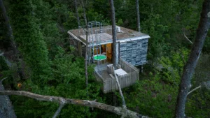 Este complejo de 5 estrellas se ubica en Laxe, en la provincia de La Coruña. Además de unas vistas increíbles al mar que ofrecen estas cabañas de madera en los árboles, su gran ventaja es el jacuzzi privado en cada casita y las ventanas panorámicas que hacen que te sientas uno más de este entorno natural sin igual. Si quieres experimentar algo nuevo y reconectar con la madre tierra, pulsa «Reserva» y prepárate para tu próxima gran aventura por las tierras gallegas.
