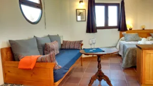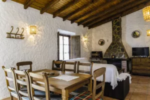 Hablando de lugares llenos de historia… Este sí que conserva su tradición y transmite ese duende auténtico. Casa La Alcaidía es un amplio alojamiento de 120 m² rodeado de Naturaleza, ideal para una estancia cómoda y tranquila. Cuenta con un salón-comedor con Smart TV de 50”, chimenea, cocina abierta con vistas al jardín y aire acondicionado frío/calor. En el exterior encontrarás un chiringuito-barbacoa totalmente equipado. Dispone de tres dormitorios con camas individuales de alta calidad, colchones viscoelásticos, edredones nórdicos y detalles en terciopelo, todos con vistas al campo o al jardín. Cada habitación tiene capacidad para una cama supletoria y está equipada con materiales hipoalergénicos y antiácaros, pensados para garantizar el máximo confort durante todo el año.