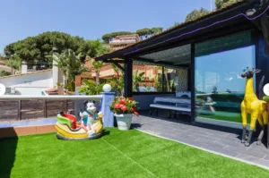 Casa MiraMiranda es un refugio artístico entre el mar y la montaña, situado en Teià, a solo 20 minutos de Barcelona y a 3 km de la playa. Rodeada de Naturaleza, esta casa creativa combina vistas al Mediterráneo, jardín con piscina, y espacios llenos de personalidad, donde cada detalle ha sido diseñado por su propietaria. Con tres dormitorios, amplio salón tipo loft y porche con futbolín, es ideal para desconectar sin alejarse de la cultura, el arte y el mar. Además, podrás disfrutar de rutas por el Parque de la Serralada Litoral y actividades acuáticas en el cercano Puerto de El Masnou.