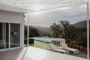 La casa Río Cedena es un refugio de tranquilidad rodeado de Naturaleza, ubicada en una moderna urbanización entre Navahermosa y Los Navalmorales. Con capacidad para 14 personas (ampliable a 15), ofrece cinco dormitorios, un amplio salón con chimenea, cocina equipada y dos terrazas perfectas para disfrutar al aire libre. Su espectacular piscina, rodeada de encinas y con vistas al monte, convierte cada estancia en una experiencia única. Desde aquí podrás avistar fauna salvaje y explorar rutas de senderismo por los montes de Toledo, en un entorno sereno ideal para compartir en familia o con amigos.