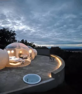 Como habrás podido ver más arriba, un hotel burbuja es una especie de tienda de campaña con forma de burbuja con vistas panorámicas, que te permiten disfrutar de los paisajes de la zona casi las 24 horas del día. Es una opción muy original de pasar un fin de semana o unas vacaciones de verano.