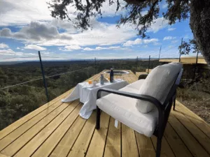 La Burbuja Cigüeña Negra es un refugio celestial en plena Naturaleza, ideal para quienes sueñan con dormir bajo las estrellas sin renunciar al confort. Situada junto a una reserva natural y cerca de Ciudad Rodrigo, ofrece cama Queen Size, baño completo, climatización todo el año y desayuno artesanal en la terraza privada. Destacan su jacuzzi exterior (cerrado en invierno), ruta guiada por un experto local y una cena especial servida en la intimidad de la burbuja. Un lugar mágico para desconectar y vivir una experiencia inolvidable.