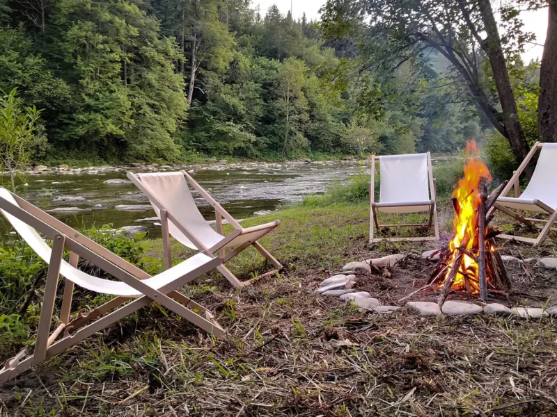 Tuż przy granicy Bieszczadzkiego Parku Narodowego, w maleńkiej wsi Chmiel, czekają na Ciebie domki ukryte głęboko w lesie – z dala od ludzi, blisko szumiącego Sanu. Wokół tylko drzewa, górskie potoki i dzika przyroda. Każdy poranek pachnie tu świerkiem, a wieczory rozświetlają gwiazdy. 🌲