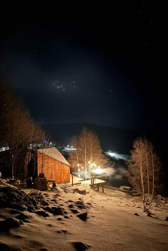 Zimą można ruszyć na skitury spod samego domu, odwiedzić okoliczne stoki narciarskie (Kasina, Limanowa, Koninki) albo wybrać się na kulig czy relaks w Termach Gorce. A w Nowy Rok? Spacer wśród saren, kawa w altanie z widokiem na ośnieżony Ćwilin i może trochę malowania w ciepłym świetle pracowni.