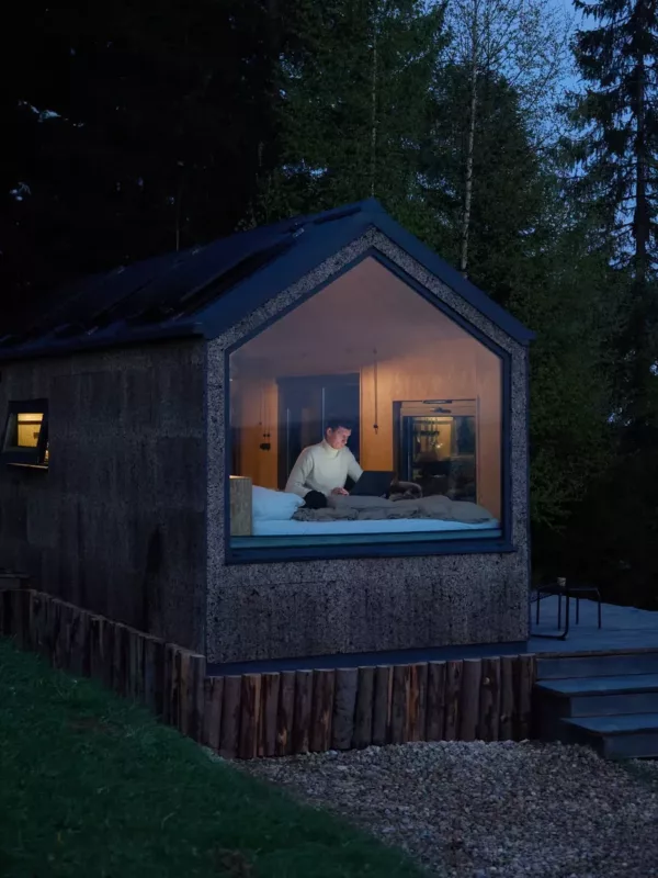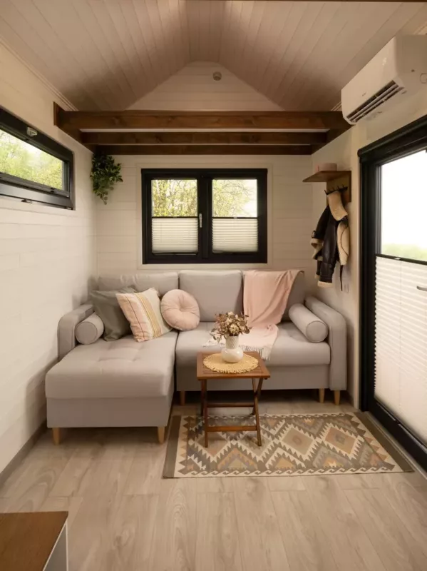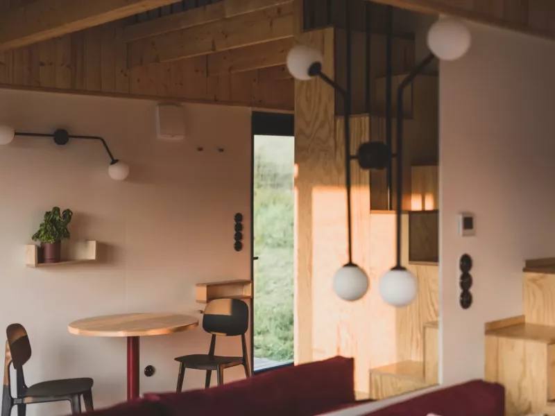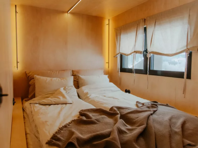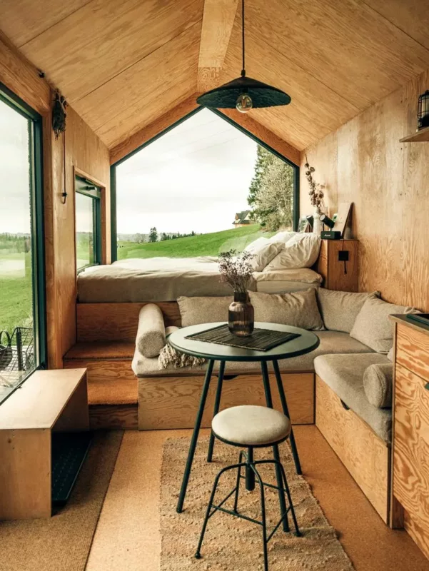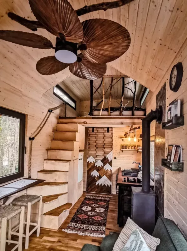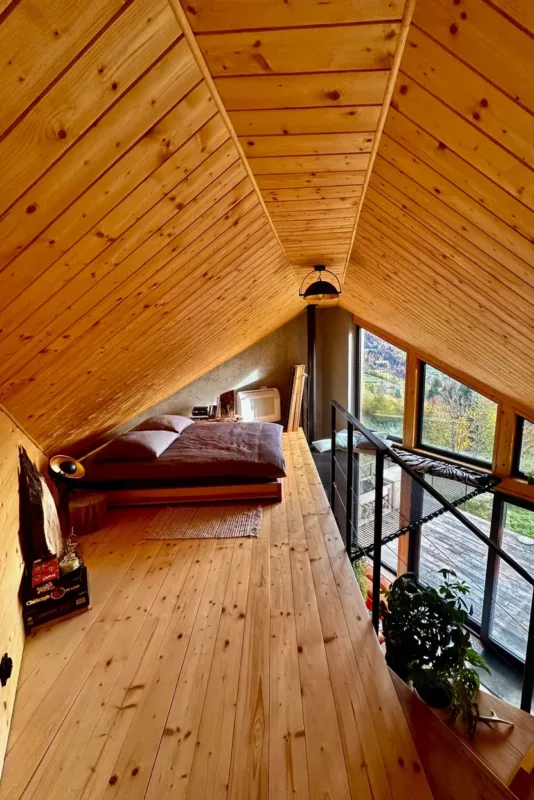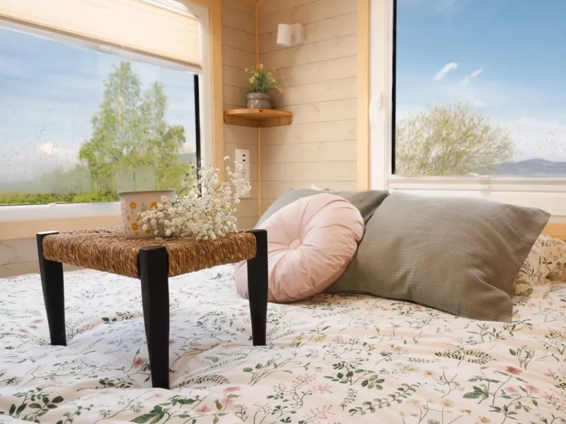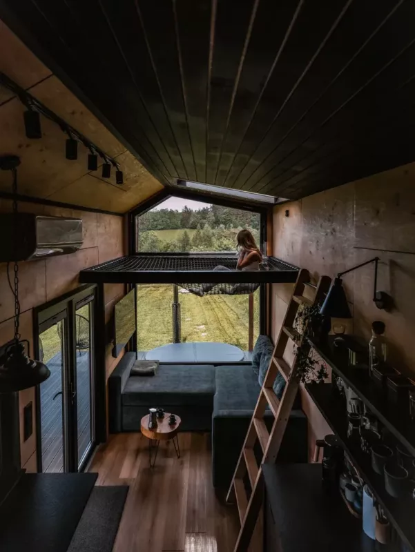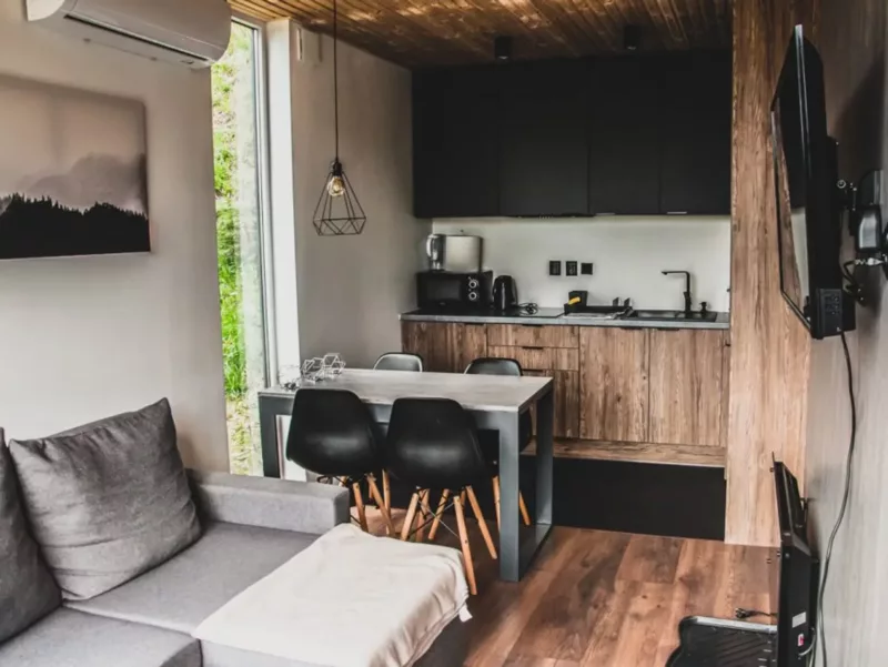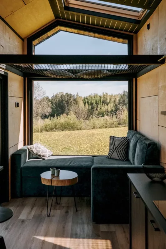 Ten mały, ale funkcjonalny domek został zaprojektowany z myślą o komforcie i relaksie. Duże okna pozwalają podziwiać otaczającą przyrodę, a przytulne wnętrze stwarza idealne warunki na odpoczynek. oto.tinyhouse to doskonała baza na górskie wędrówki lub miejsce, w którym można po prostu wyciszyć się z dala od zgiełku.
