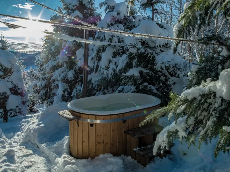Jacuzzi to za mało? Żaden problem – mamy coś naprawdę ekstra. Co powiesz na kąpiel w bąbelkach z widokiem na ośnieżone Tatry? ⛰️ Brzmi magicznie, prawda? Takie atrakcje zapewni domek w górach z balią.