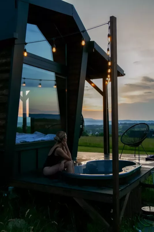 Domek z jacuzzi, sauną, banią i balią – oto zapowiedź prawdziwego relaksu. 🌊 Poznaj unikalne miejsca z prywatnymi strefami SPA i…poczuj magiczną moc wody na własnej skórze.