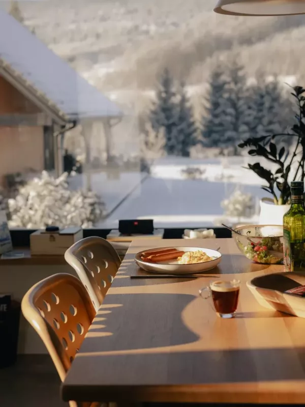 Czasem wystarczy pachnące drewnem wnętrze, ciepłe światło lamp i taras z widokiem na ośnieżone szczyty. A czasem przyciąga autentyczność – szczera gościnność Gospodarzy, lokalne smaki i przytulna atmosfera, którą trudno podrobić. 🏔️