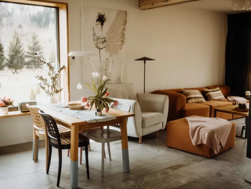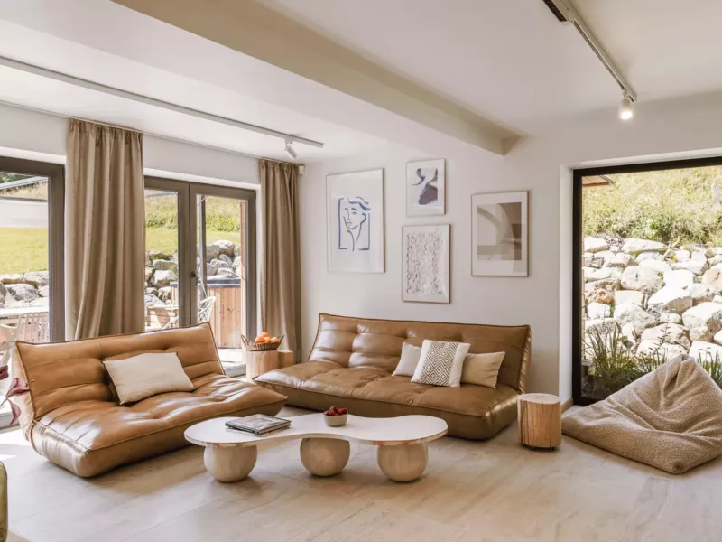Dzień zaczyna się od kawy z widokiem na szczyty Beskidu Żywieckiego. Później można ruszyć prosto na szlak, a po powrocie – zanurzyć się w jacuzzi, z którego widać górskie pejzaże. Wieczory to czas sauny, kominka i muzyki z winyli. To dom, który daje ciepło i spokój. Idealny, by odetchnąć, złapać rytm Natury i przypomnieć sobie, czym jest prawdziwy odpoczynek.