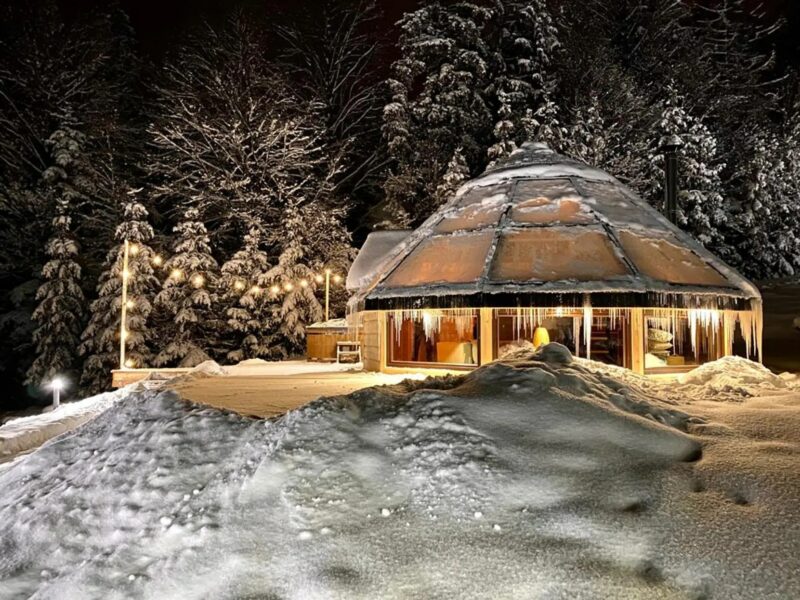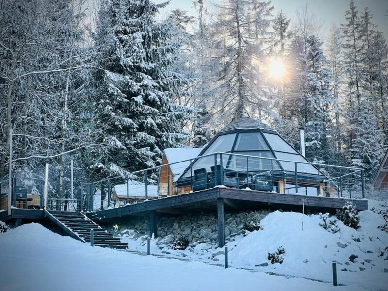 Nie tylko domki w Zakopanem – z jacuzzi możecie znaleźć również namioty sferyczne. Dobrym przykładem jest Peak Glamp, wyjątkowe miejsce dla tych, którzy pragną połączyć ponadprzeciętny komfort z bliskością Natury.