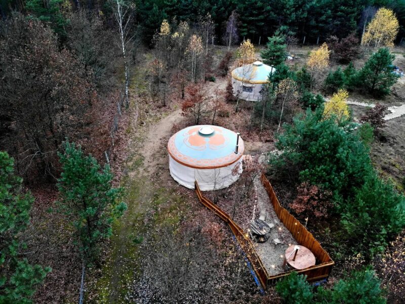 Właściciele zapraszają Was także do klimatycznych jurt. Co ważne, każda z nich posiada prywatne jacuzzi. Dodatkowo na terenie glampingu znajdziecie ponadto dwa baseny oraz saunę.