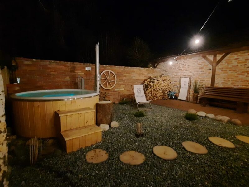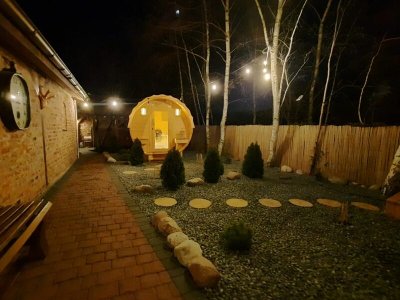 Dla miłośników relaksu w SPA pod chmurką, właściciele przygotowali saunę fińską opalaną drewnem oraz prywatne balie. Z pewnością domek z balią, szczególnie tak wyjątkowy, gwarantuje udany wypoczynek.