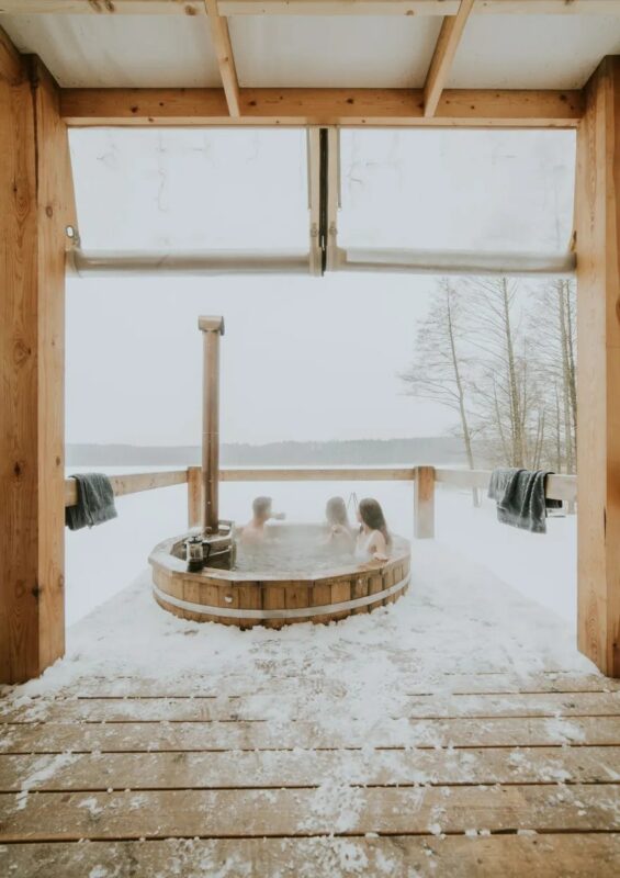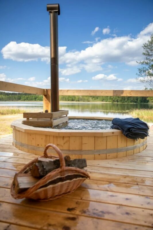 Każdy domek posiada prywatną balię na tarasie – relaks podczas długiej kąpieli z cudownymi widokami na otaczającą naturę to najlepsze, co tylko można sobie wymarzyć.