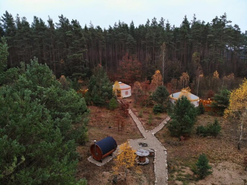 Jeśli marzycie o wypoczynku z dala od zgiełku wielkich miast i hałasów, to koniecznie odwiedźcie Polanę Glamp! To klimatyczny domek z banią położony w malutkiej wiosce w zachodniopomorskim. Co ważne, domki otacza wyłącznie Natura, a cały obiekt znajduje się pośród lasu, więc to idealne miejsce na wyciszenie.