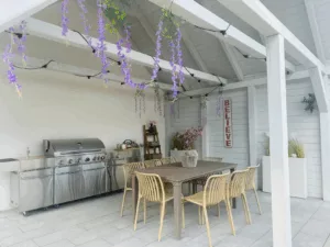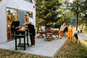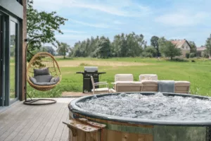 Dorośli docenią strefę relaksu z dwoma jacuzzi z hydromasażem i leżanką, altanami z ratanowymi meblami, miejscem na ognisko i grillem. A wszystko to na ogromnej działce 3000 m² z dostępem do prywatnego, ogrodzonego lasu o powierzchni 8000 m². To idealne miejsce na wakacje z rodziną, przyjaciółmi czy inną rodziną, a więc pełne przestrzeni, swobody i domowej wygody, gdzie każdy, niezależnie od wieku, znajdzie coś dla siebie.