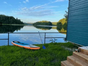 Jeśli szukacie nietypowego noclegu na Kaszubach nad jeziorem, to Wyspa Kaszuby jest miejscem, które z pewnością Was oczaruje. Domek na wodzie otoczony jeziorem, oferuje niepowtarzalną okazję do spędzenia czasu w absolutnej bliskości z Naturą. Cisza, spokój i piękno otoczenia sprawiają, że to idealne miejsce na ucieczkę od codzienności.