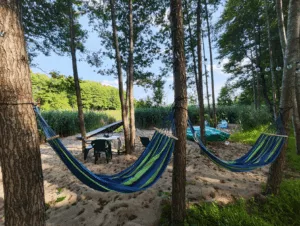 Poranki w hamaku z książką, wieczory przy ognisku i nocne kąpiele w ciepłej balii pod gwiazdami. Właśnie tak wygląda codzienność w Kaszubskiej Balii. W zaledwie 15 minut dojdziecie spacerem nad Jezioro Połęczyńskie z plażą, pomostem i miejscem na grilla.