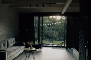 Enklawa to całoroczny dom w otoczeniu lasów i łąk, idealny na odpoczynek z dala od zgiełku. Z przestronnego tarasu i dużych przeszkleń podziwiać można życie Natury o każdej porze dnia. W środku czekają dwie komfortowe sypialnie z łóżkami king size, salon z kominkiem-kozą, w pełni wyposażona kuchnia i wanna z widokiem. Goście mogą wypoczywać w ogrodzie z jacuzzi, przy ognisku lub z książką w domowej biblioteczce. Enklawa to miejsce na Święta, rocznice i proste chwile offline, a więc z dala od zasięgu, blisko siebie.