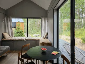 Dzikie Domki Kos i Żuraw to dwa pachnące drewnem azyle na Kaszubach, stworzone z myślą o wypoczynku w rytmie slow. Są położone wśród łąk i lasów, i oferują prywatne balie z gorącą wodą, dostęp do panoramicznej sauny z olejkami eterycznymi i wnętrza pełne ciepła. Z kominkiem, drewnianymi akcentami i przytulnymi sypialniami. Każdy domek ma swój unikalny charakter: Kos to cień i stonowany design, a Żuraw to jasność i miękki, poranny blask.