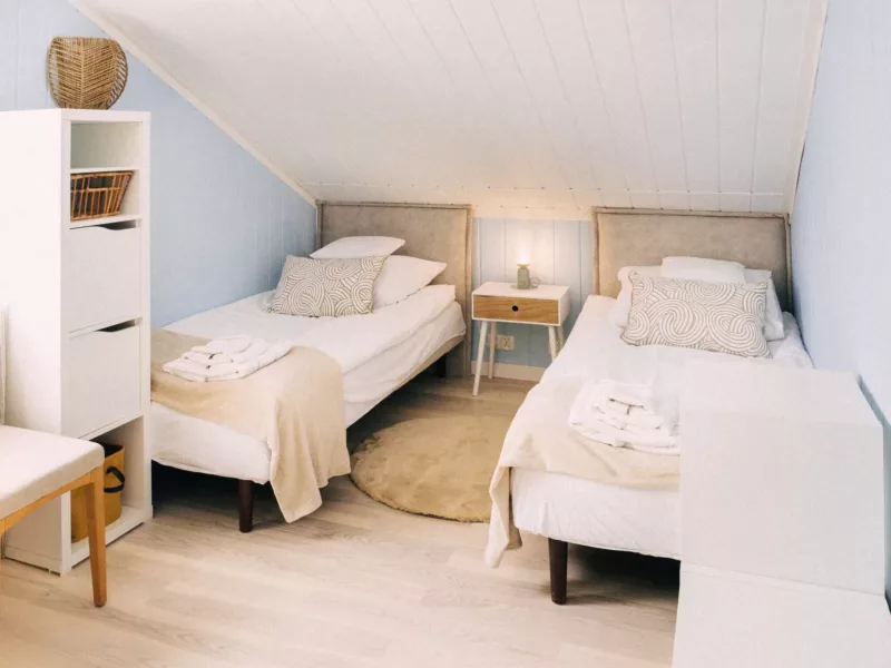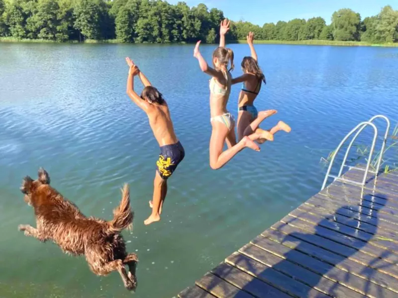 W niebieskim domku zapomnisz o codzienności – w nim chwile płyną własnym, spokojnym rytmem. Pomimo pewnego rozluźnienia, nie zabraknie wam pozytywnych emocji. Kajaki, deski stand-up (SUP) 🏄♀️ i łódka do łowienia ryb – każdy dzień możecie zaplanować inaczej. Również dzieciom, które ucieszą się z gier planszowych, tenisa stołowego, a także piaskownicy z różnymi zabawkami.