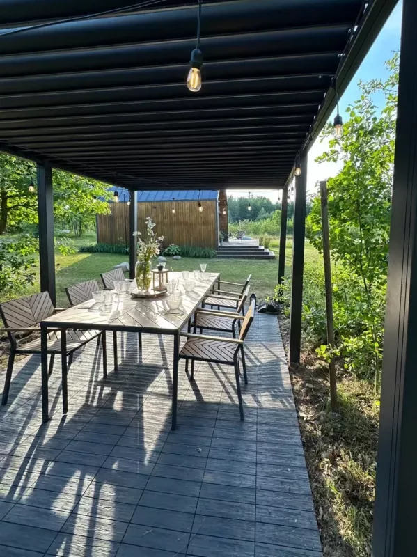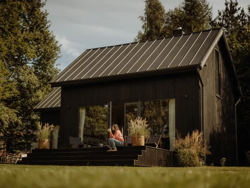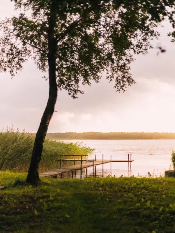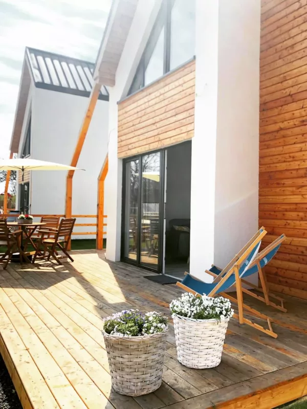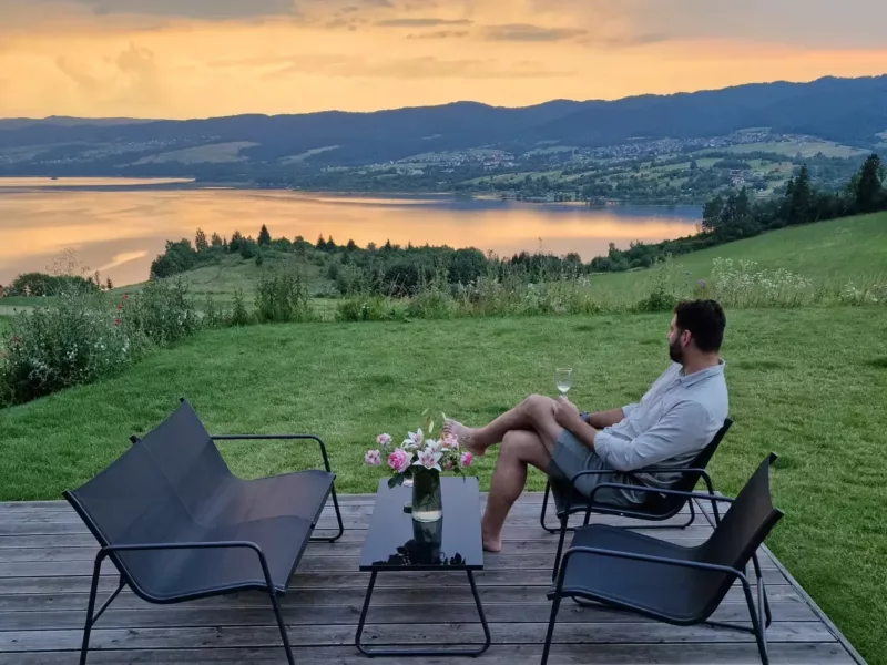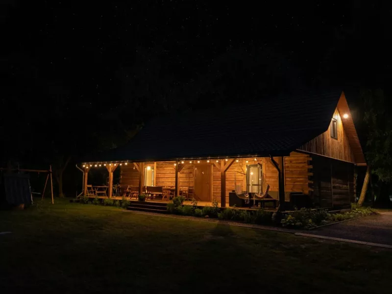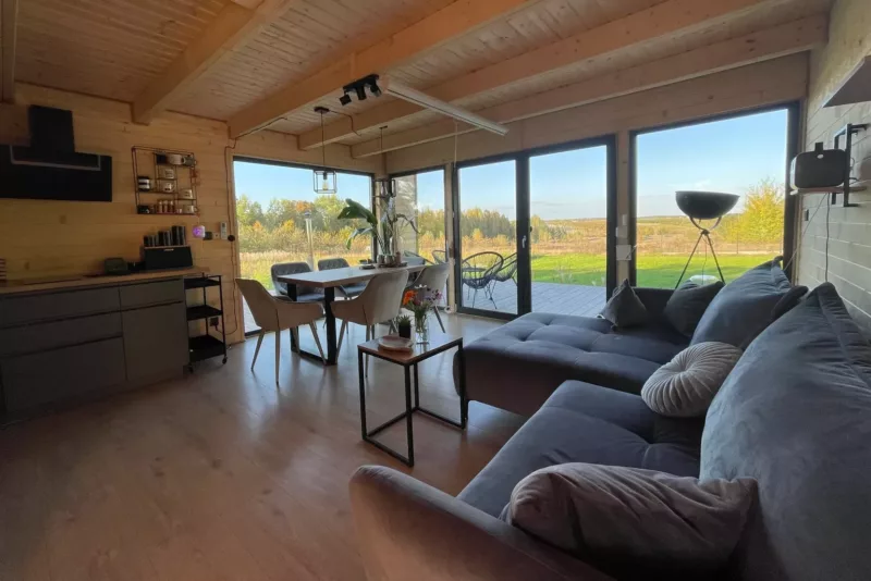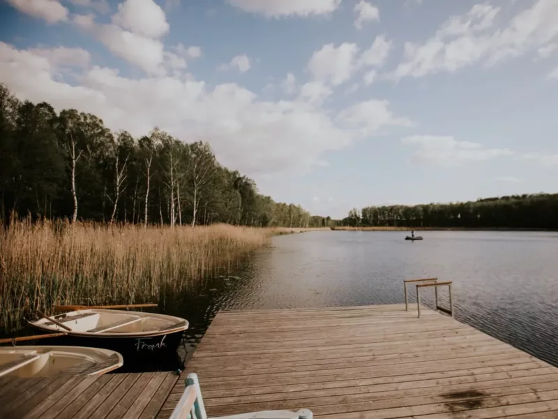Letnisko21 to wymarzone miejsce na majówkę blisko wody. Zaledwie 38 kroków dzieli taras domku od spokojnego Jeziora Sarbsko. Poranki zaczynają się tu śniadaniem z widokiem na czaple i kormorany, natomiast wieczory kończą relaksem w zewnętrznym jacuzzi pod gwiazdami. To przestrzeń, która sprzyja zatrzymaniu się na chwilę i cieszeniu się Naturą – bez pośpiechu, w otoczeniu śpiewu ptaków oraz szumu trzcin.