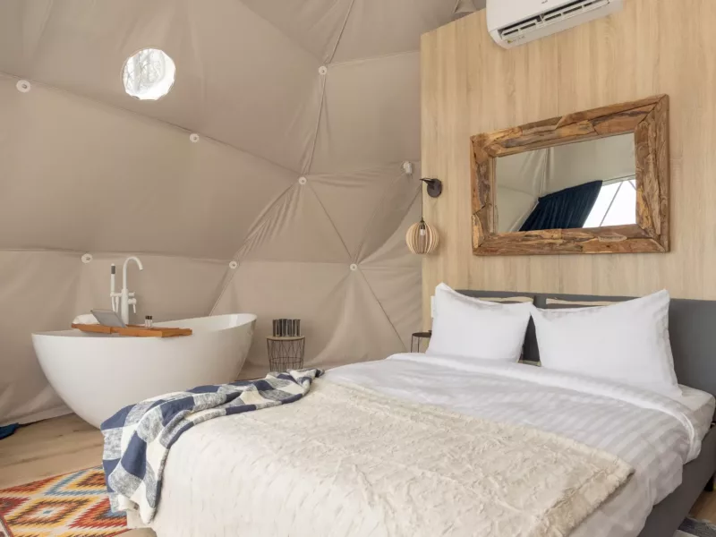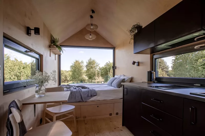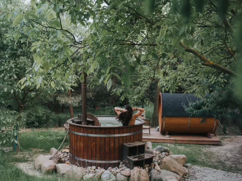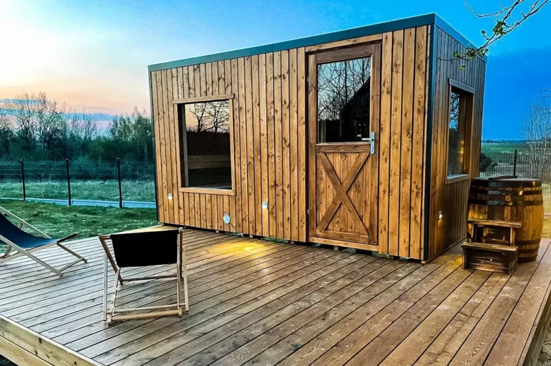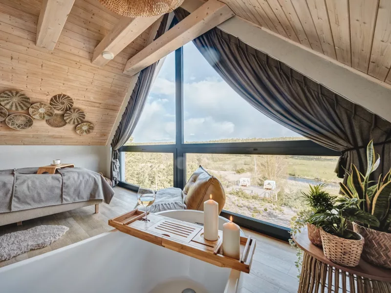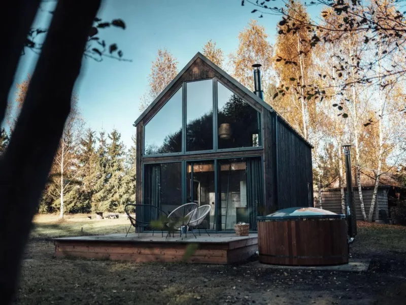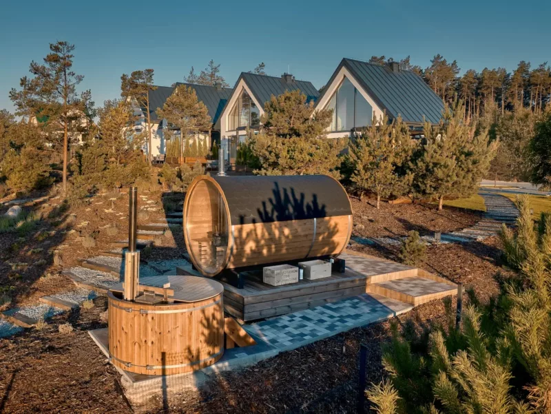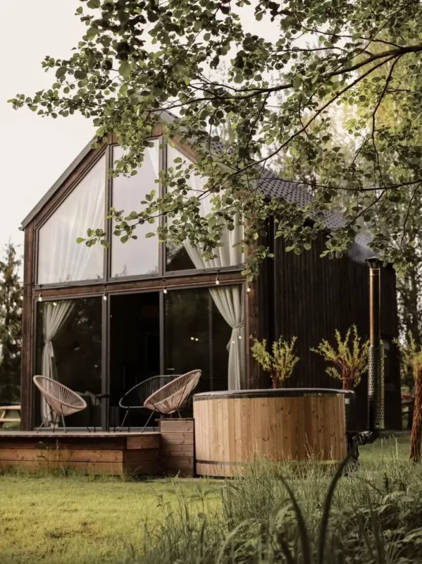 Domki w stylu tiny house, pomimo niewielkich rozmiarów, zapewniają komfort i wygodę. Warto też wspomnieć o aromatycznej kąpieli w wannie pod gołym niebem. Czy to nie brzmi jak idealne warunki na romantyczny wypad we dwoje?