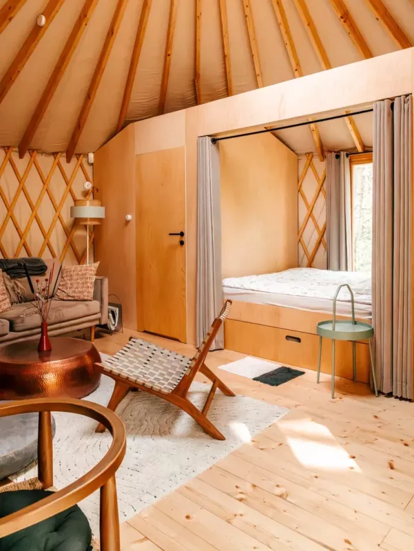 Samochód wybierają najczęściej osoby, którym zależy na wygodzie w podróży. Docenią również trzy komfortowe jurty, jakimi są Dacza Puchacza. Położone w miejscowości Stare Osieczno w regionie lubuskim, zostały stworzone z myślą o osobach, które chcą zanurzyć się w Naturze, nie rezygnując przy tym z wygody. To doskonały przykład glampingu – czyli kontaktu z przyrodą w wyjątkowych warunkach.