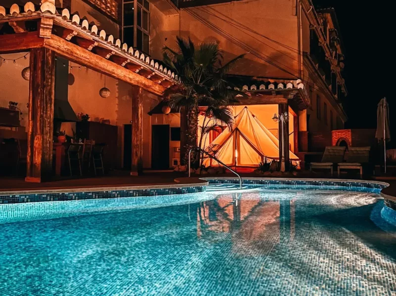 To idealna baza wypadowa na aktywną majówkę: piesze szlaki, wycieczki rowerowe, kajaki na zbiorniku Boadella-Darnius czy kąpiele w krystalicznych wodach rzeki Muga – wszystko w zasięgu krótkiej przejażdżki. Po dniu pełnym przygód wrócisz do przytulnego namiotu, skorzystasz ze strefy spa lub zanurzysz się w basenie z widokiem. A wieczorem? Kolacja przy świecach, lokalne wino i rozgwieżdżone katalońskie niebo – bez pośpiechu, bez hałasu, po prostu tu i teraz.