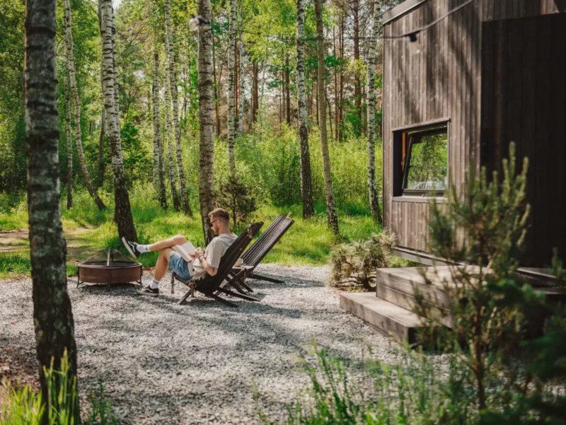 W samym sercu Puszczy Zielonki, zaledwie kilkadziesiąt minut drogi od Poznania, czeka miejsce, w którym rzeczywiście można odetchnąć – foREST by Weranda Home. Otoczone lasem oraz położone tuż nad dwoma jeziorami – Książym i Borowim – domki kuszą ciszą, spokojem i bliskością Natury. 🌿 Dlatego właśnie to idealna propozycja na majówkę dla tych, którzy chcą oderwać się od codzienności, posłuchać śpiewu ptaków oraz zrelaksować się w rytmie slow.