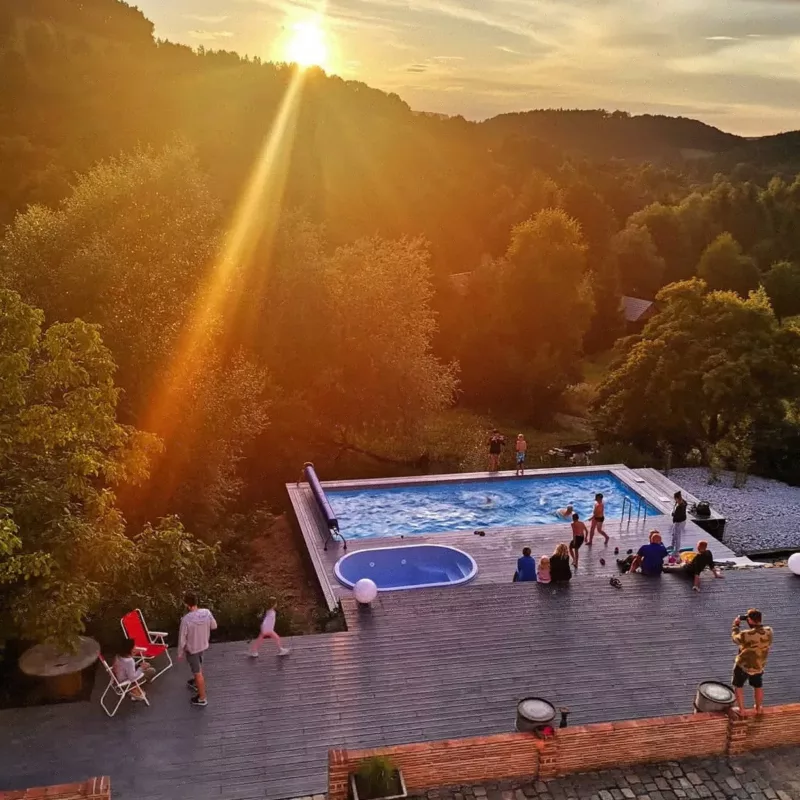 Wiejska Sowa to nie tylko nocleg – to przestrzeń do odpoczynku i prawdziwego kontaktu z Naturą. Basen z podgrzewaną wodą, taras słoneczny, wiaty z paleniskiem, a dookoła rozciągające się lasy i szlaki Gór Sowich – to idealna baza na piesze wędrówki, rowerowe wycieczki czy leniwe popołudnia z książką.