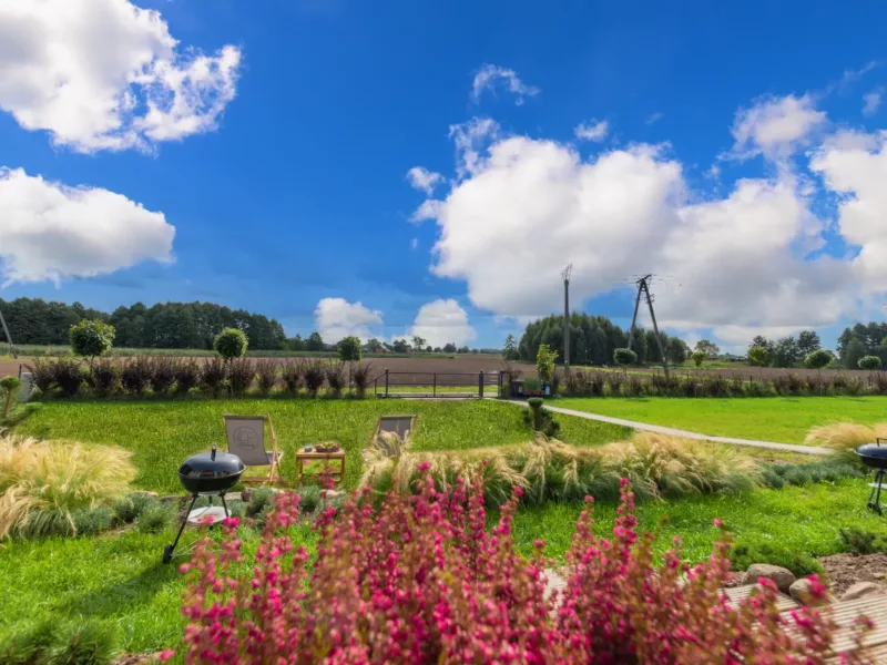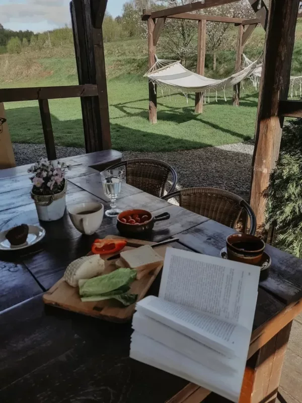 Taras z widokiem na ogród i jezioro może służyć za jedyną atrakcję. Warto spróbować jeszcze innych aktywności dostępnych na miejscu. Jest tu sprzęt do grillowania i wędkowania, 🎣 kajaki dwuosobowe i boisko do gry w badmintona, a także mnóstwo ścieżek spacerowych i rowerowych. A jeżeli lubicie czasem usiąść wygodnie, aby zwyczajnie pogapić się w niebo, to w Otulinie Rospudy A będziecie mieć sporo okazji, aby chwytać leniwie czas. I takie wakacje w Polsce dla dwojga będziecie pamiętać najlepiej.