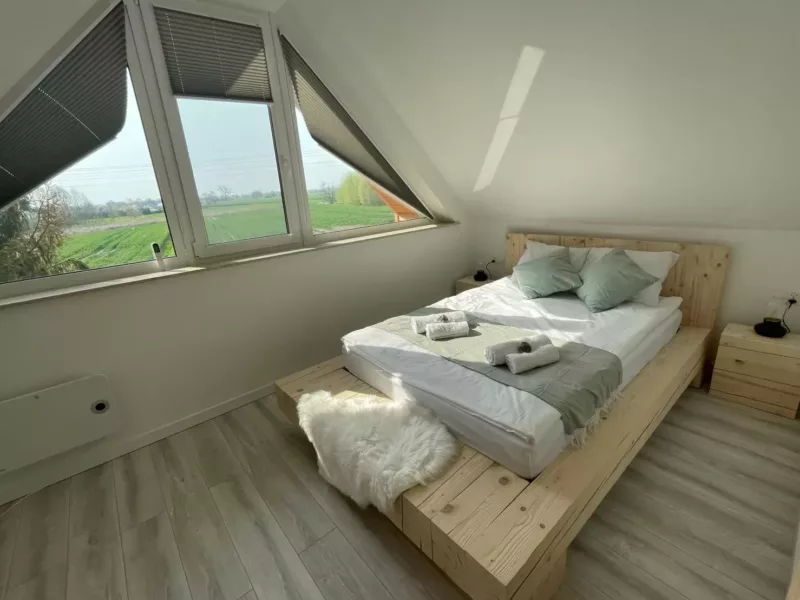 Na Gości czeka wolnostojący domek i rozrywkowa stodoła z bilardem, piłkarzykami, ping-pongiem i kanapami – idealne miejsce na wspólne wieczory. To świetna baza wypadowa na zwiedzanie okolicy pełnej zamków i drewnianych kościółków. Jest to również przytulna przystań na budżetowe, rodzinne wakacje w Naturze.