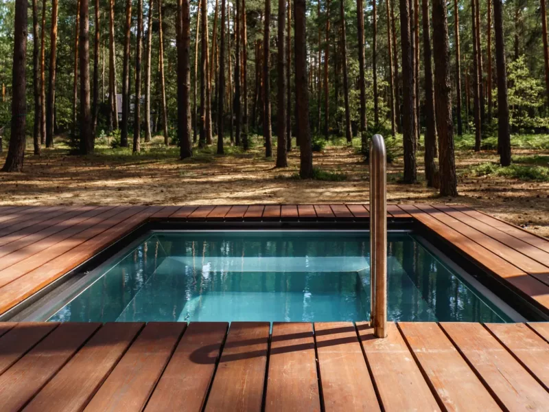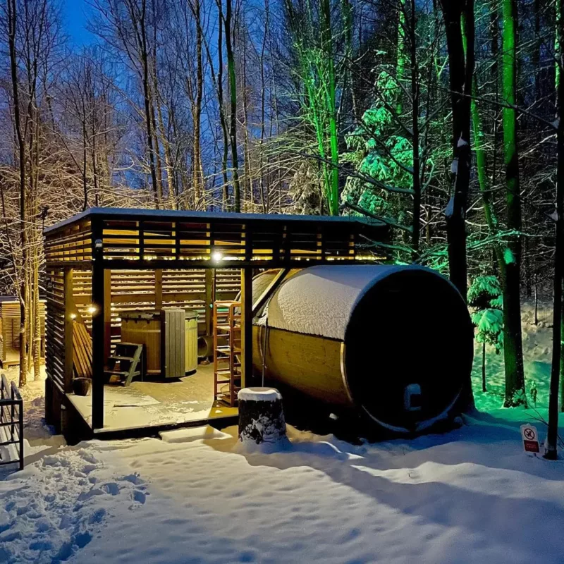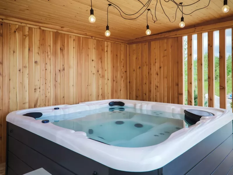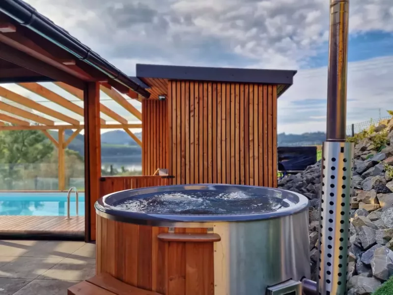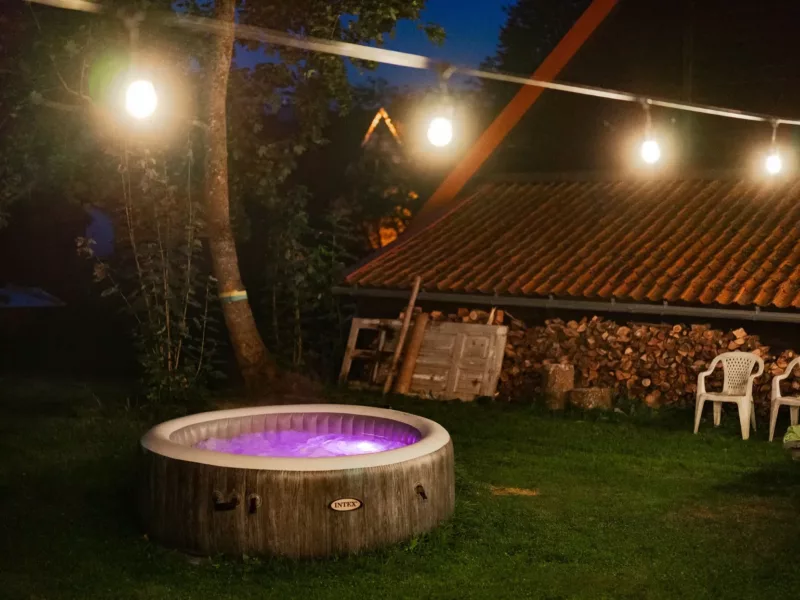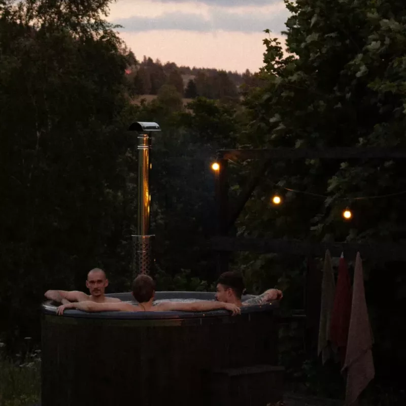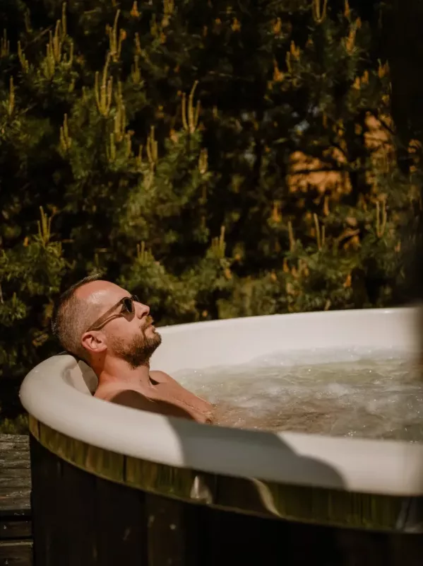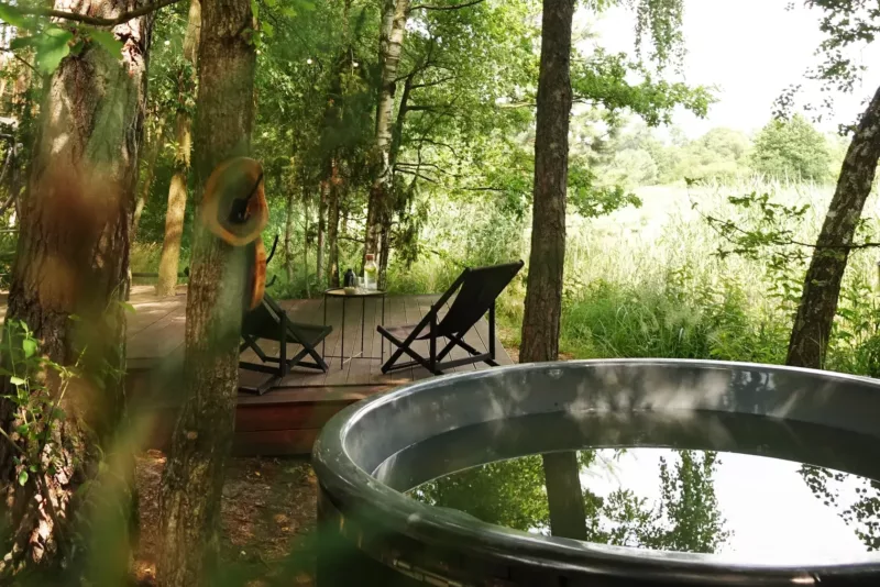 Wieczorem można zanurzyć się w balii z hydromasażem i patrzeć w niebo usiane gwiazdami. LASpot to nie tylko miejsce na wypoczynek – to przestrzeń, w której można naprawdę się zatrzymać i pobyć razem.
