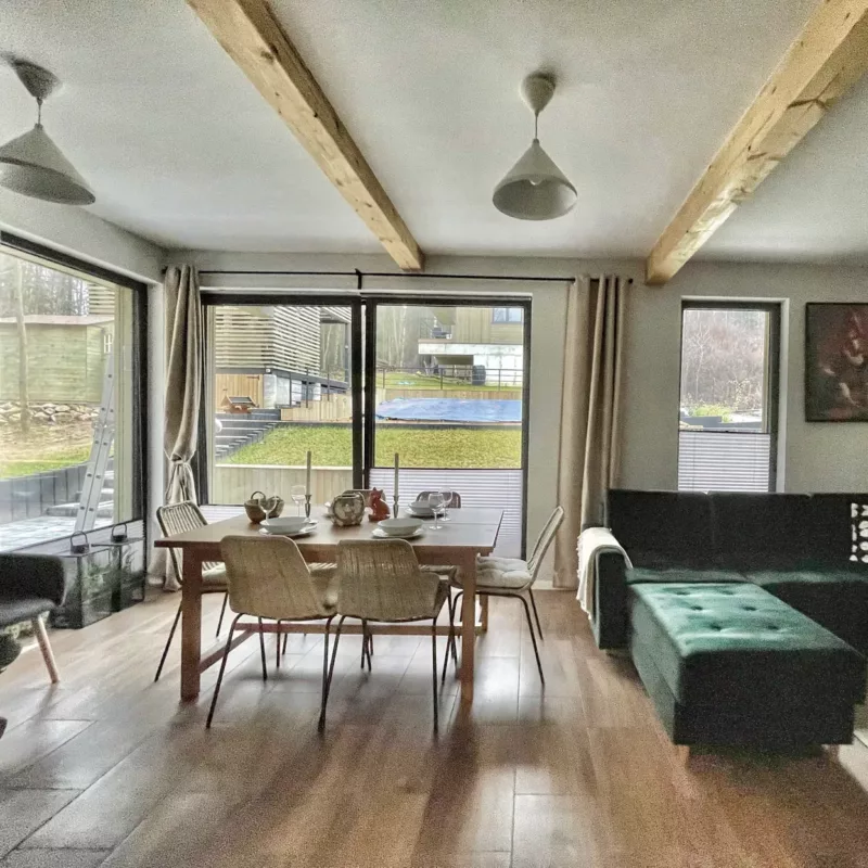 Z dala od zgiełku, w sercu górskiego krajobrazu, powstał dom pełen ciepła, harmonii i osobistej historii. Kawałek Nieba to miejsce, które urzeka swoją architekturą i spektakularnym przeszkleniem z widokiem na przyrodę. Goście mogą wynająć cały dom na wyłączność lub jeden z dwóch niezależnych apartamentów. Każdy z nich oferuje komfort, prywatność i niezapomniane wrażenia.