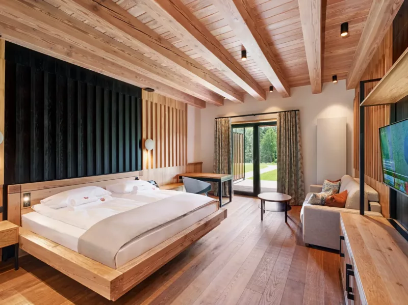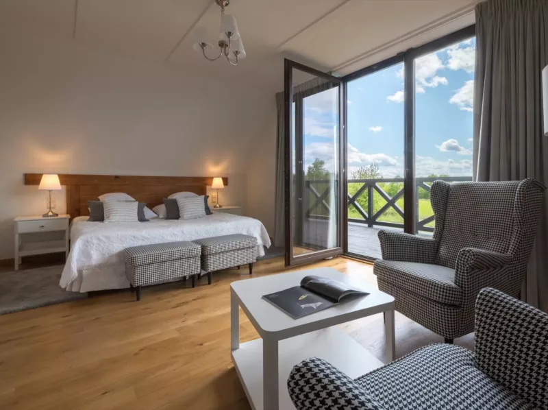 Każda willa ma kilka sypialni, ale to salon i kuchnia tworzą ciepłe, wspólne centrum domu– z dala od zgiełku i blisko siebie. Goście mają dostęp do wszystkich atrakcji hotelu SPA. Wśród nich są basen, sauny, masaże, sala fitness, restauracje oraz stadnina koni. To miejsce łączy prywatność, wygodę i spokój – idealne na romantyczny wyjazd.