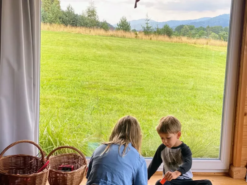 Tuż obok płynie płytka rzeczka, idealna do brodzenia, a kilka minut drogi stąd czeka zalew Klimkówka. Rodzice mogą złapać oddech, delektując się kawą na tarasie, wsłuchując się w śpiew ptaków i obserwując bawiące się dzieci. To miejsce, gdzie codzienność zwalnia, a bliskość Natury staje się częścią rodzinnych wspomnień.