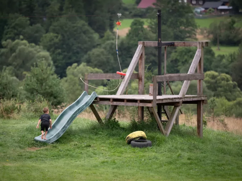 Polanka to wyjątkowe miejsce na środku górskiej łąki – jedyna chatka w okolicy, otoczona ciszą, poranną mgłą i bezkresną zielenią. Tutaj dzieci mają prawdziwą swobodę. Mogą biegać bez końca, budować zamki z piachu, zjeżdżać na tyrolce i odkrywać świat bez ekranów i hałasu miasta.