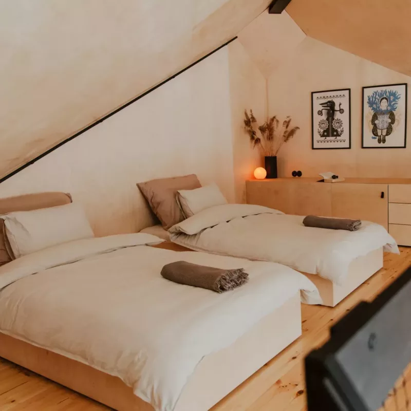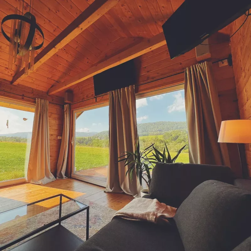 Błogostan to coś więcej niż nocleg – to spełnione marzenie jego Twórców. Każdy mebel wykonali własnoręcznie, dbając o każdy szczegół, byś mógł po prostu… poczuć się błogo. W środku czeka na Ciebie przytulne wnętrze z antresolą, tarasem i sypialnią z widokiem na góry. A jeśli masz ochotę na przygodę – wskakuj na elektryczny rower i odkrywaj Singletracki Masywu Śnieżnika.