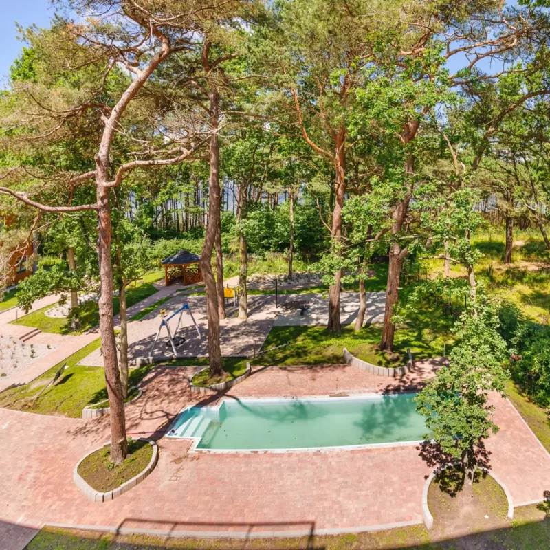 Apartamenty Dwie Sosny to świetna opcja na budżetowy wypoczynek nad Bałtykiem – zwłaszcza dla rodzin z dziećmi. Obiekt znajduje się dosłownie kilka kroków od plaży w Ustroniu Morskim, na terenie objętym ochroną Natura 2000. Otoczenie Natury, duży plac zabaw, zielone tereny i bezpieczne, ogrodzone podwórze sprawiają, że dzieci mogą tu spędzać całe dnie na świeżym powietrzu. 🌊