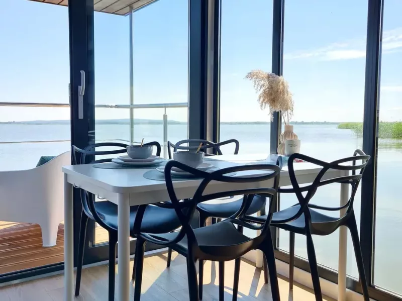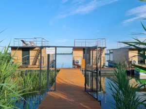 Sunrise Houseboats to propozycja dla tych, którzy marzą o nietypowym urlopie – dosłownie na wodzie. Zacumowane na spokojnym jeziorze Jamno, zaledwie 300 metrów od morza, domki łączą w sobie urok życia na wodzie z wygodą całorocznego apartamentu. Goście mogą wypoczywać na zadaszonym tarasie lub podziwiać zachody słońca z prywatnego balkonu na dachu.