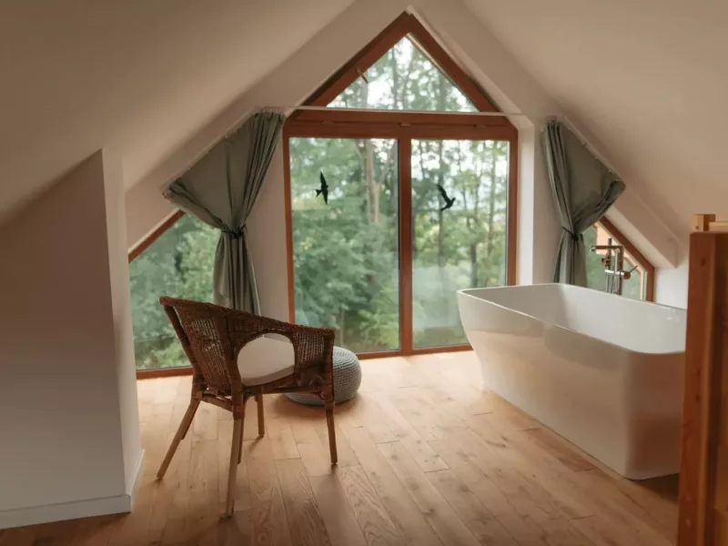 Postaw na coś, czego jeszcze nie próbowałaś/próbowałeś. Zamiast klasycznego pensjonatu wybierz nocleg w domku na drzewie, jurcie albo glampingowym namiocie z widokiem na jezioro. Taki wyjazd zostanie w pamięci na długo – zwłaszcza jeśli poranek zaczniesz z kawą na tarasie w środku lasu, a wieczór zakończysz kąpielą w balii pod gwiazdami.