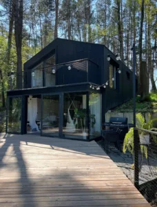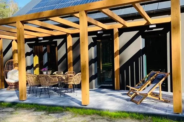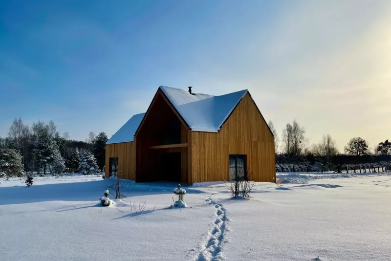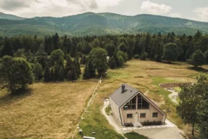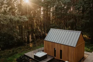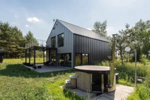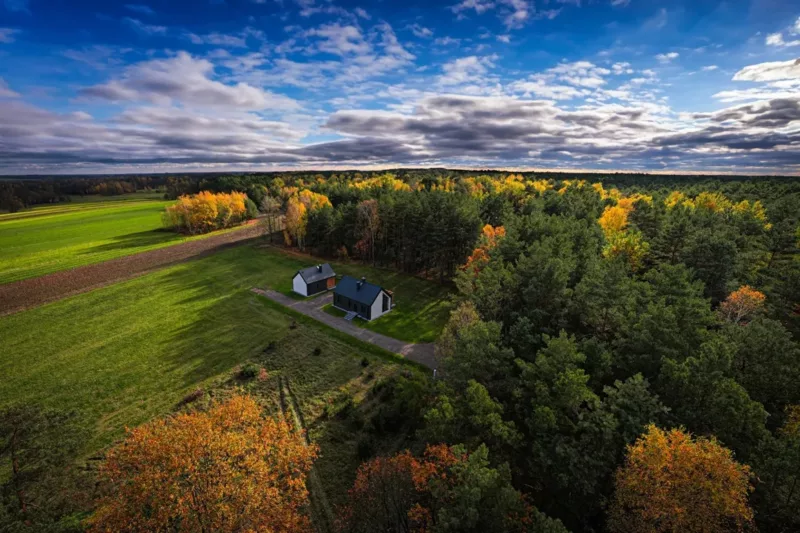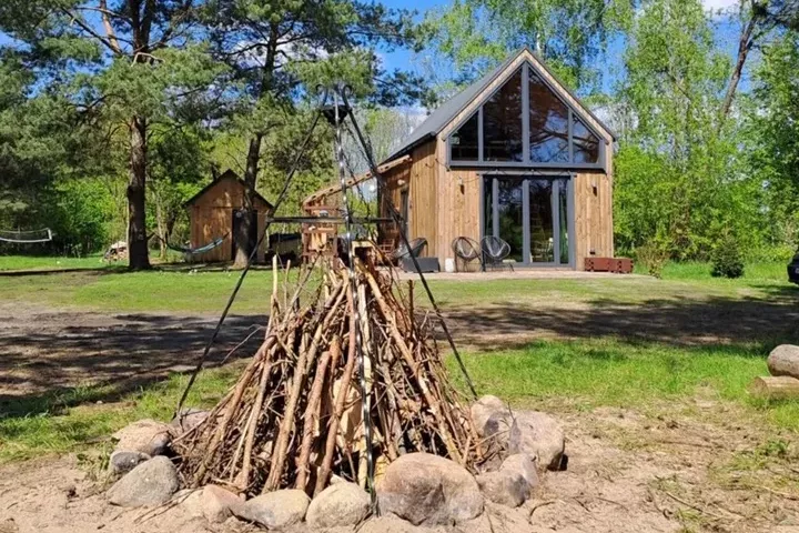 Wnętrza łączą styl loftu z przytulnym klimatem – są tu trzy sypialnie, salon z kominkiem i bar. Ponadto Goście mogą korzystać z jacuzzi i sauny, a okolica kusi spływami kajakowymi, jazdą konną i grzybobraniem. To miejsce, które łączy luz, wygodę i leśną magię.