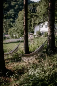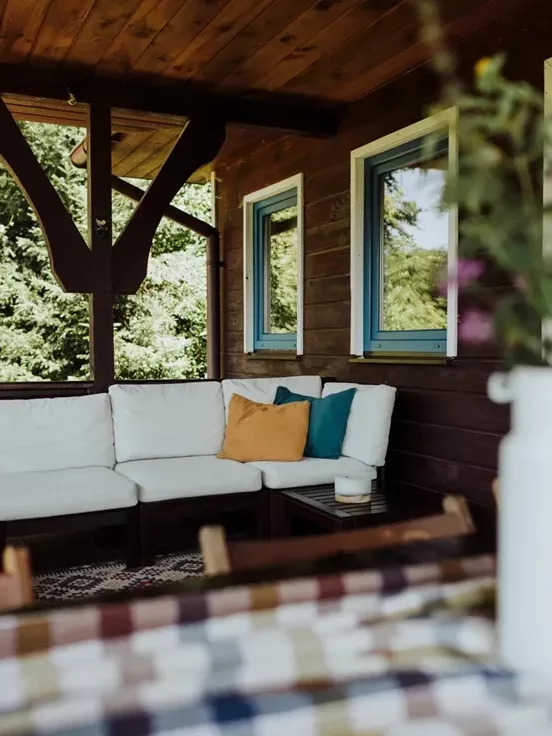 W środku czeka przytulna antresola, a za oknem – las, hamaki i śpiew ptaków. Ponadto do dyspozycji Gości są sauna, bania, miejsce na ognisko i dostęp do szlaków Green Velo. To idealna sceneria na wspólne rozmowy, relaks i celebrowanie przyjaźni – bez pośpiechu, w harmonii z Naturą.