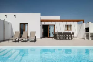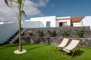 Apartamenty są przestronne, komfortowe i w pełni wyposażone – z jasnymi sypialniami, stylowym salonem i kuchnią gotową na wspólne gotowanie lub poranną kawę. Co więcej, niektóre mają prywatne tarasy z panoramicznym widokiem, idealne na toasty o zachodzie słońca. Na miejscu czeka też basen z leżakami i ogród, który sprzyja relaksowi. A gdy najdzie Was ochota na przygodę, niedaleko znajdziecie Park Narodowy Timanfaya, plażę Papagayo i wiele szlaków do zwiedzania tej niezwykłej wyspy.