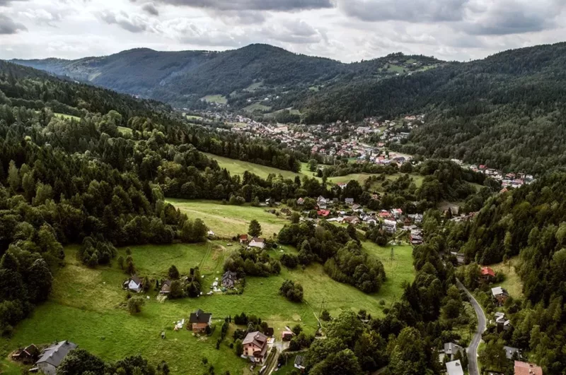 Nasza kolejna propozycja to Rycerki Dom na Szlaku – położony w malowniczej dolinie Potoku Rycerskiego, tuż przy granicy ze Słowacją. To azyl na końcu świata, gdzie Beskidy pokazują swoje najbardziej baśniowe oblicze. Praszywka, Bendoszka czy Przegibek – już same nazwy tutejszych szczytów działają na wyobraźnię. Co więcej, z tarasu domu rozciąga się widok na rozproszone przysiółki Rycerki Górnej, a wieczory można spędzać w saunie lub jacuzzi, słuchając winyli i patrząc w gwiazdy.