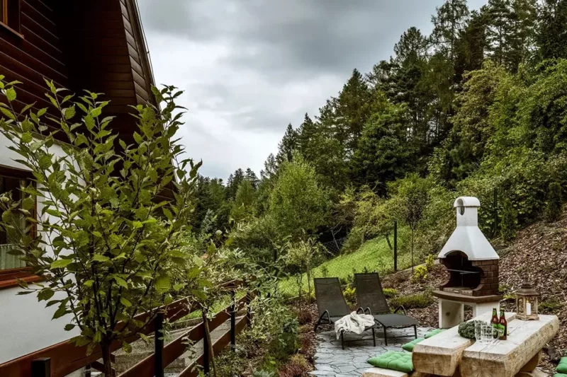 Wnętrza zachwycają dużymi przeszkleniami, projektorem, sprzętem wodnym i klimatycznym oświetleniem – idealnym do wieczornego biesiadowania. Ponadto okolica pełna jest atrakcji: od leśnych spacerów po spływy kajakowe i wizyty w lokalnych winnicach. To miejsce, które sprawi, że ten wieczór zostanie z Wami na długo.