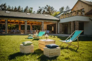 To idealna opcja, jeśli planujecie cały weekend celebracji – z tańcami, ogniskiem i błogim lenistwem nad wodą. Ponadto możecie skorzystać z masaży, cateringu i pełnej organizacji atrakcji. Willa pozwala świętować bez ograniczeń – w rytmie Natury, ale z nutą przepychu.